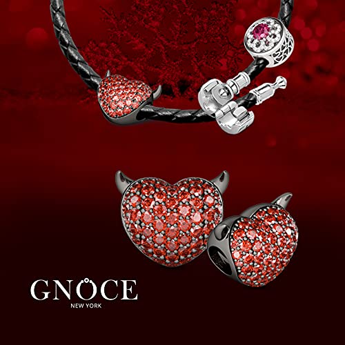 GNOCE Charm a Forma di Cuore con Corni in Agento S925 Diavolo con Cuore Gentile Charm Bead con Zirconi per bracciali e Collana Regalo di Natale per Famiglia Moglie Figlia Amico