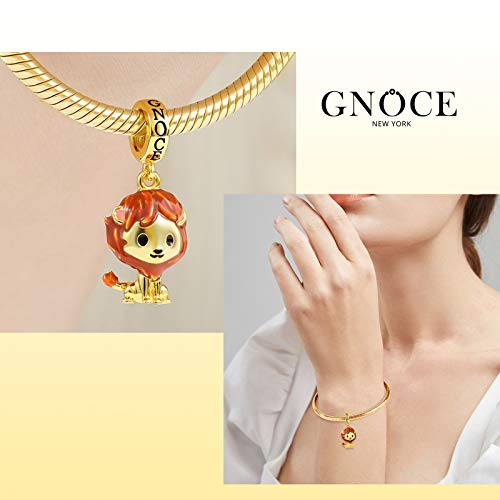 GNOCE Lion Charms Pendente Dangle Sterling Silver 18K Placcato Oro Animali Perline Charm Adatto a Tutti i Braccialetti/Collane Bel Regalo Per Le Donne Bambini