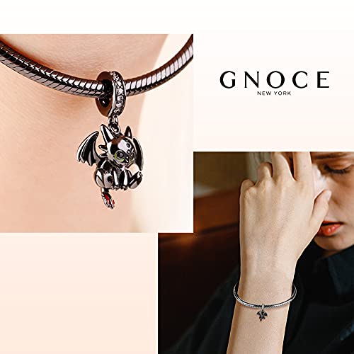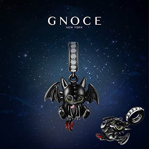 GNOCE Ciondolo Charm Drago in Agento S925 Amico o Nemico Charm Bead Placcato Nero Per Bracciali e Collana Regalo per Moglie Donne (Piccolo drago nero)