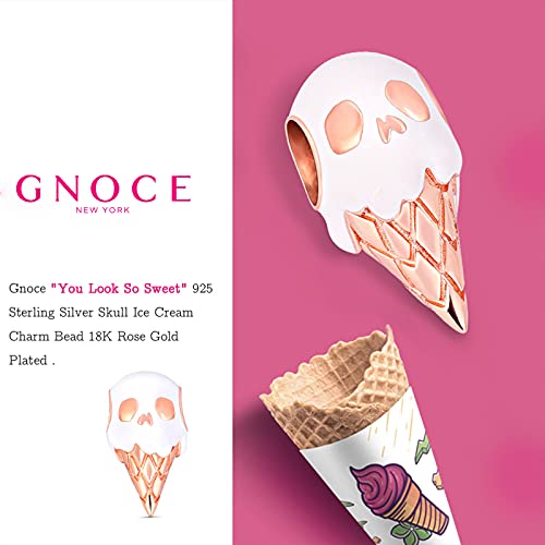 GNOCE Oro Rosa Ciondolo Teschio Gelato in Agento S925 "Sembri Così Dolce" Charm per Bracciali e Collana Regalo per Moglie Donne