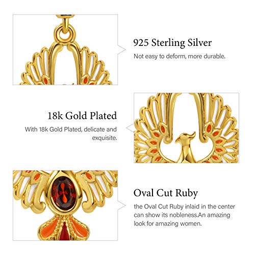 GNOCE Golden Phoenix Pendenti Con Ciondoli Ciondolo In Argento Sterling 18 Carati Oro Animali Perline Charm Con Taglio Ovale Rubino Fit Braccialetto/Collana Regalo Per Donne Ragazze
