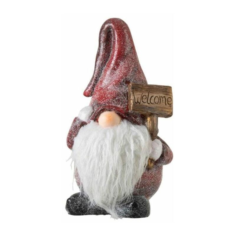 Gnomo decorativo in resina con vestito rosso e scritta welcome, due misure Dimensioni: cm. 18x18x35h Gnomo in resina Per questo Natale decora la tua casa simpatici personaggi natalizi come questi gnomi in resina, perfetti da appoggio su di un mobile o come fermacarte.