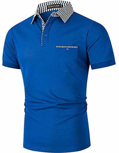 GNRSPTY Polo Uomo Manica Corta con Tasca Reale Slim Fit Casual Maglia Elegante Golf Tennis Colletto Scozzese Magliette Camicia,Blu,XL