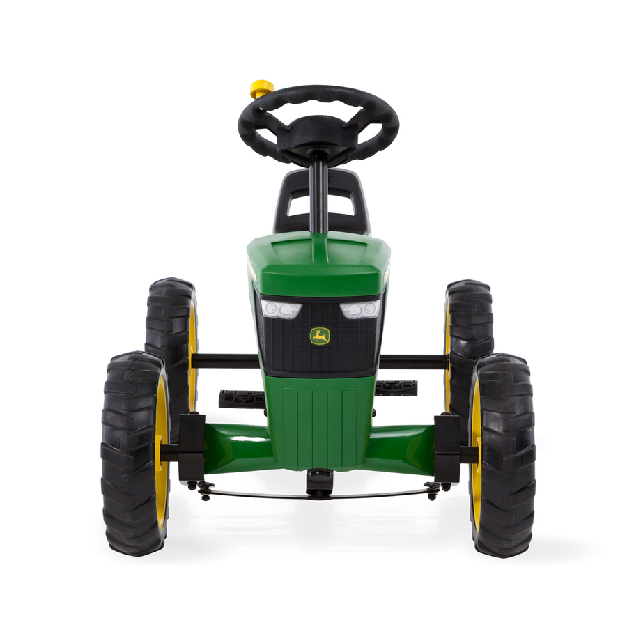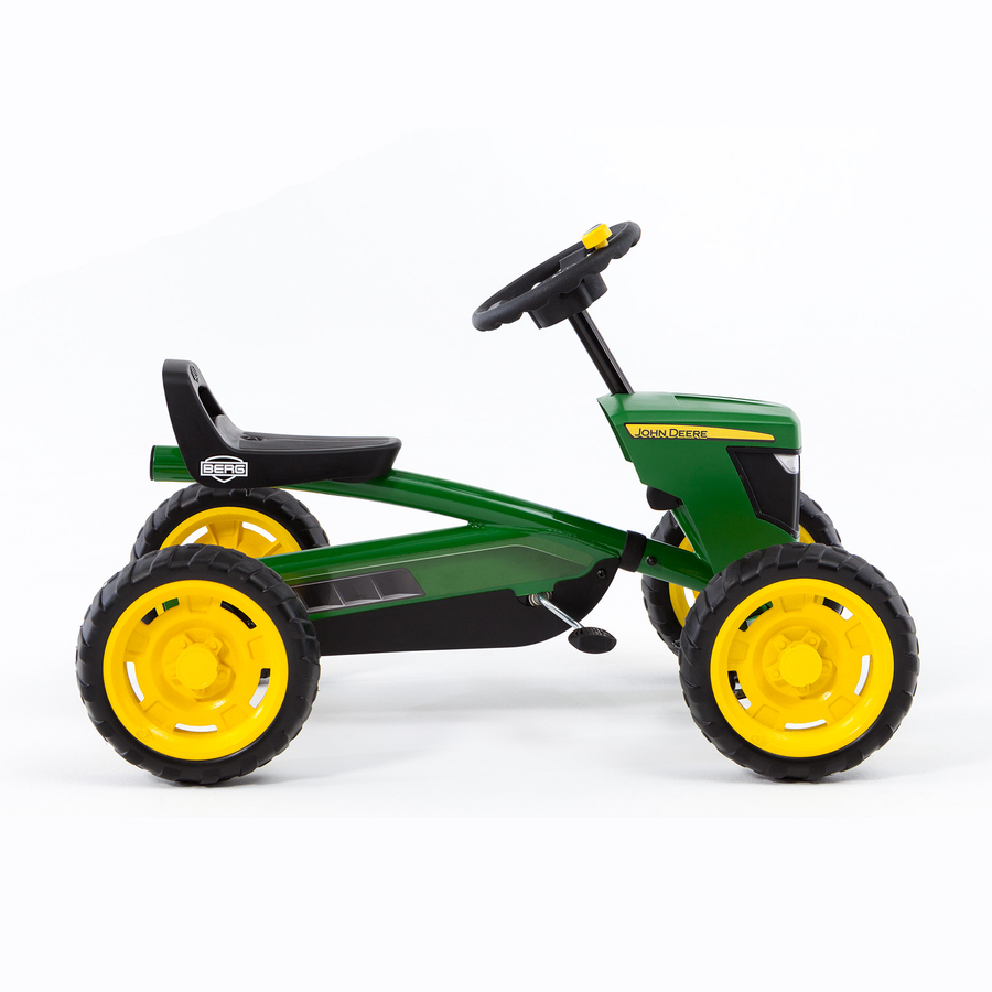 Dettagli del prodotto: Età: da 24 mesi Altezza minima del conducente 85 cm Altezza massima. Altezza massima del pilota 115 cm Peso massimo dell'utente: 30 kg La trasmissione diretta e l'ergonomia unica rendono l'apprendimento della guida molto semplice per ogni bambino. Sempre in controllo del manubrio e di Pedal e poiché entrambi funzionano indipendentemente l'uno dall'altro Pneumatici solidi in EVA silenziosi e silenziosi, mai più una gomma a terra Stabile e sicuro su quattro ruote e con asse oscillante Pedalata facile e leggera Pedal grazie ai cuscinetti a sfera e all'esclusiva ergonomia di tiger Cresce con voi grazie al manubrio e alla sella regolabili Pedala in avanti e all'indietro Dimensioni e peso: Dimensioni da assemblato (lunghezza x larghezza x altezza): 83 x 49 x 50 cm Peso: 7 kg Incluso nella fornitura: 1 x BERG Pedal Go-Kart Buzzy John Deere Avvertenze e istruzioni di sicurezza: Attenzione: è necessaria la supervisione di un adulto. Questo prodotto non deve essere utilizzato su strade pubbliche. Non effettuare curve brusche quando si guida ad alta velocità. Il go-kart può ribaltarsi! Fare attenzione agli indumenti appesi, come sciarpe e lacci delle scarpe. Questi possono impigliarsi nelle parti in movimento, causando incidenti. Non guidare mai se si è sotto l'effetto di alcol, droghe o farmaci, che possono avere un effetto negativo sui tempi di reazione o sulla capacità di giudizio.