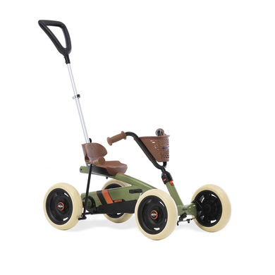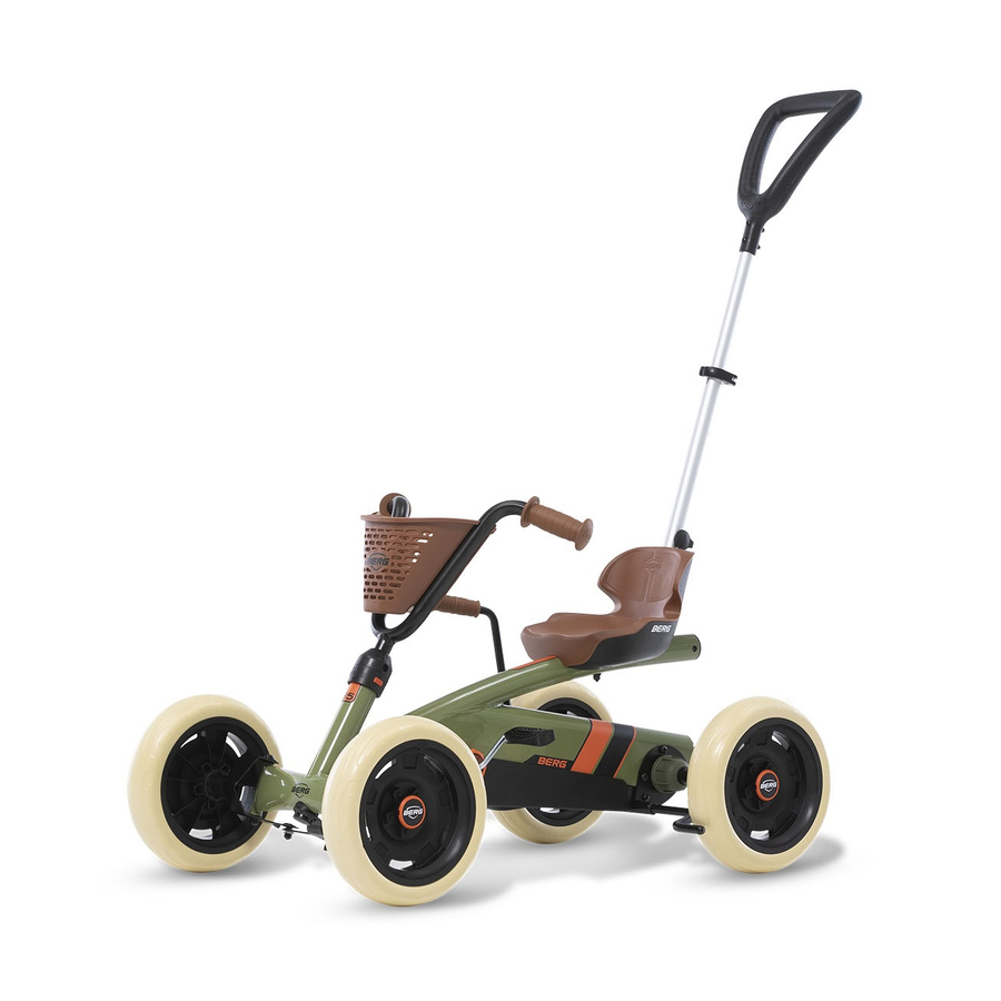 Dettagli del prodotto: Età: da 24 mesi Peso massimo dell'utente: 30 kg Barra di spinta regolabile Design a quattro ruote molto stabile Facile e veloce da convertire da go-kart Pedal in auto da passeggio e viceversa Con blocco del volante in modo che il bambino non possa sterzare da solo mentre viene spinto Con marcia in folle, in modo che Pedal e non giri mentre viene spinto Con freno a mano Il bambino mantiene il controllo del Pedal e anche mentre sterza, poiché non è collegato al manubrio Avviamento rapido e senza sforzo, poiché il manubrio non viene spinto via dalle mani quando il bambino sale su Pedal e Dotato di pneumatici solidi e silenziosi, per non bucare mai più. Dimensioni e peso: Dimensioni da assemblato (lunghezza x larghezza x altezza): 83 x 49 x 50 cm Peso: 7,8 kg Materiale e cura: Materiale del pneumatico: EVA Incluso nella consegna: 1 x BERG Pedal Go-Kart Buzzy 2-in-1 Retro Green 1 x barra di spinta Avvertenze e istruzioni di sicurezza: Attenzione: è necessaria la supervisione di un adulto. Questo prodotto non deve essere utilizzato su strade pubbliche. Fare attenzione agli indumenti appesi, come sciarpe e lacci delle scarpe. Questi possono impigliarsi nelle parti in movimento, causando incidenti.