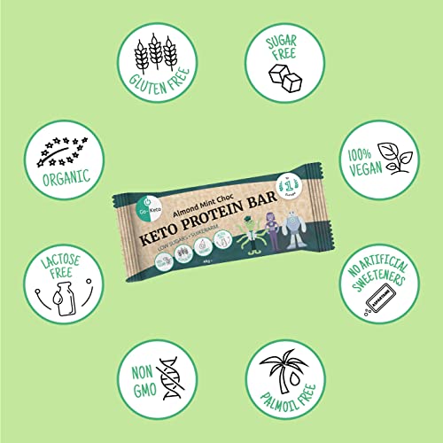 Go-Keto BIO Protein Bar - Almond Mint Choc | 16 x 40g barretta proteica keto | con proteine piselli, mandorle, olio di cocco | barra proteica senza zucchero, ottima per dieta keto | vegan, Low Carb