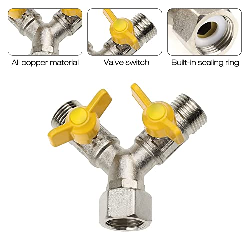 Gobesty Distributore a Y a 3 vie con 2 Rubinetti a Sfera di Arresto, 2-Vie Distributore a Y 1/2 Pollici in Ottone per Tubo Aspirazione, 1/2 AG per 2 Attacchi