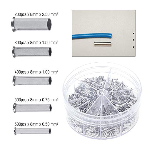 [La confezione contiene] 1900 pezzi ordinati. (500 x 0,5 mm², 500 x 0,75 mm², 400 x 1,00 mm², 300 x 1,5 mm², 200 x 2,5 mm².)...