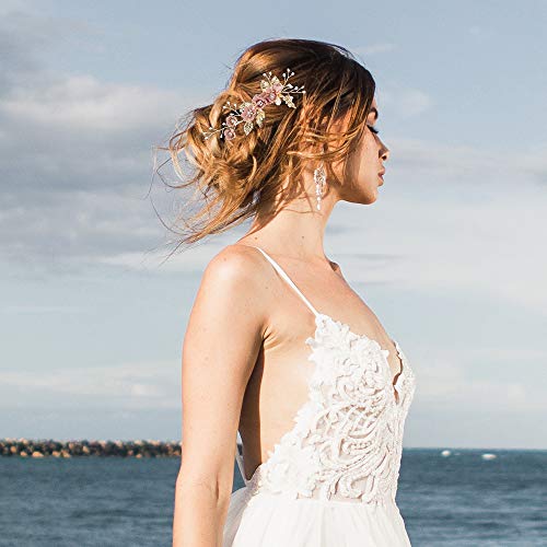 Abbinamento facile: bellissimi accessori per capelli da sposa con strass e perle, possono essere utilizzati per qualsiasi acconciatura da sposa, gioielli per capelli artigianali perfetti per donne e ragazze.