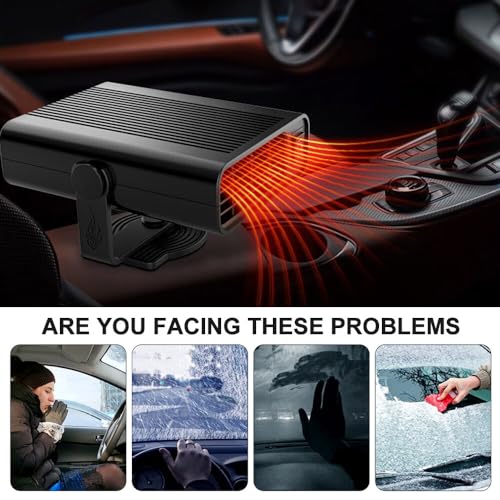 2 in 1 Riscaldatore per auto: Il riscaldatore per auto ha un duplice scopo, può fornire vento naturale e vento di riscaldamento, dispone di una tecnologia di riscaldamento ad alta efficienza, la ventola del riscaldatore per auto può sciogliere rapidamente la brina e la nebbia sul parabrezza e garantisce che si possano vedere chiaramente le condizioni della strada, scorta per la vostra guida.