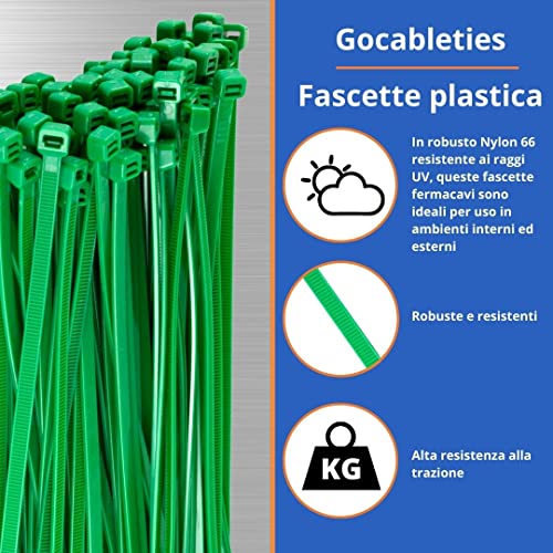 Gocableties - Fascette Plastica Verdi - 150 mm x 3,6 mm - 100 Pezzi - Piccole Fascette Colorate