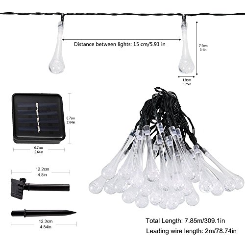 Luci di Goccia Solari, EONANT Gocce D'acqua Goccia D'acqua 20ft 30LEDs Goccia D'acqua Solare Impermeabile per Esterni, Giardino, Decorazioni Natalizie (Multicolor)