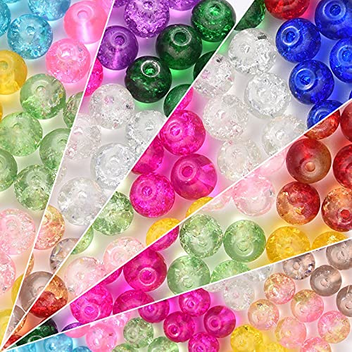 Gocelyn 600PCS 8mm set di perle di vetro crepate, 24 griglie multicolore rotonde fatte a mano crackle di perle di lampwork assortimento per risultati di collana braccialetto DIY progetti di perline