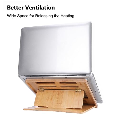 Gocokia Bamboo Fodable Laptop Notebook Riser Stand Desktop Regolabile con 4 Angoli Notebook Mount Holder Supporto Pieghevole Laptop Cooler Stand per MacBook, Tablet,