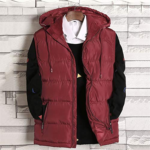 GODGETS Uomo Casual Gilet con Cappuccio Removibile Caldo Slim Fit Imbottito Piumino Giubbino Senza Maniche Smanicato per Autunno Inverno Rosso 5XL