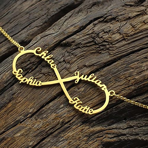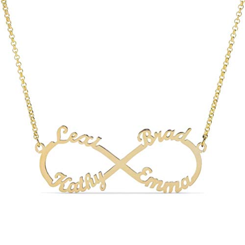 Godmoy Collana con Nome Infinito - 4 Nomi - Collana in Oro Rosa Personalizzata con Argento Sterling 925