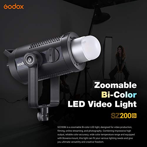 Godox 200WBi Studio LED Video Light Zoomable Photography Lamp 200W 2800-6500K Dimmerabile Luminosità con riflettore Bowens Mount per Studio Photography Live Streaming