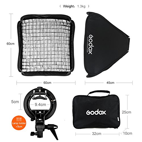 GODOX Bowen Mount S-Type Bracket, S-Type 60x60cm 24" * 24" Folding Storage softbox with Honeycomb Grid + Carry Bag for Outdoor Shooting Creative Shooting(S-Type 60X60)