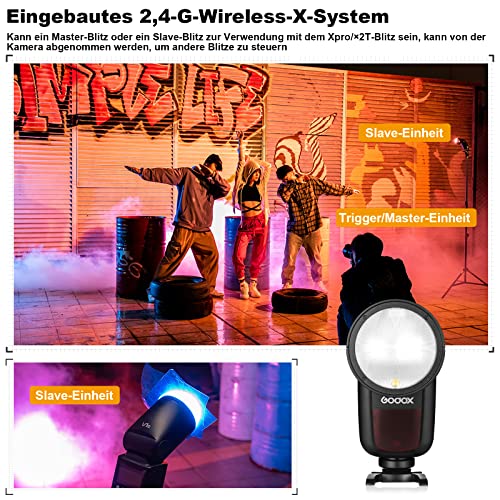 GODOX V1-C Flash per Canon testa rotonda Speedlite TTL Speedlight 2.4G Wireless System 1/8000s High Speed Sync, batteria al litio da 2600 mAh, con accessori AK-R1 AK-R22