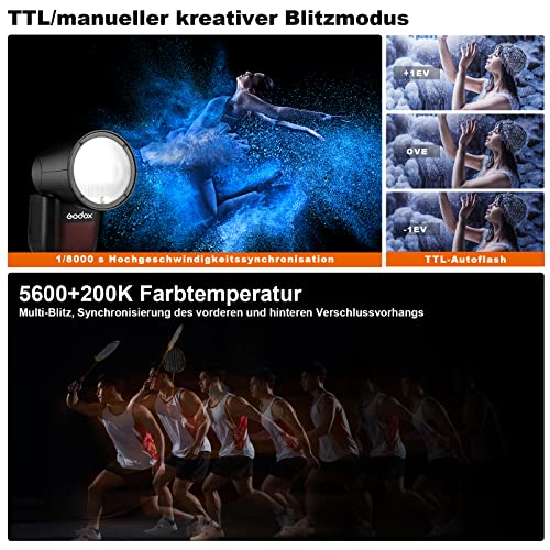 Batteria al litio di alta qualità: flash per fotocamera GODOX V1-N/V1-C. La batteria agli ioni di litio dedicata può essere ricaricata anche a piena emissione con un'alta velocità di circa 1,5 secondi e una singola batteria può essere utilizzata per circa 480 flash completi. I modelli compatibili includono Canon, Nikon, Sony, Fuji, Pentax e Olympus/Panasonic.