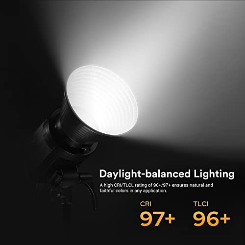 【Resa Cromatica Elevata】 Un'elevata valutazione CRI/TLCI di 96+/97+ garantisce colori naturali e fedeli in qualsiasi applicazione. E compatibile con qualsiasi modellatore di luce con attacco Bowens, funziona perfettamente con il sistema di modellatura della luce Godox e altri modificatori tradizionali sul mercato, esplorando un maggiore potenziale di scultura della luce per la tua produzione.