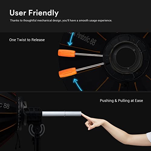 Ora, dopo gli sforzi persistenti di Godox, hai una scelta affidabile per prendere una decisione facile. L'unico riflettore che ha la forma specifica di una parabola offre le caratteristiche prestazioni luminose, ecco come deve essere questo, un vero riflettore parabolico che assicura una diffusione regolare, un bel contrasto e una versatilità focalizzabile in uno.