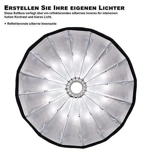 quindi crea un effetto di illuminazione diffusa ciò che è necessario per una grande area. Grande profondità, la luce cambia più uniformemente, leggera e di qualità. Questo softbox parabolico profondo è compatibile con Speed. Con Bowens Lite con BoMo
