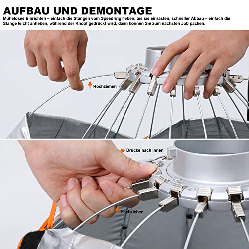 Catchlight rotondo robusto e perfetto: GODOX QR serie 16 barre di supporto con 100% fibra di vetro Deep Throwing design con barre di supporto alte con 16 barre di supporto per produrre 32 assi per ottenere una lampada anormale a forma di scatola di luce morbida. Robusto supporta la softbox ad alta resistenza e ad alta resisten