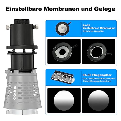 Godox SA-17 Kit con SA-06 SA-05 SA-P Snoot Ottico Bowens Conico Cilindro Focalizzatore per Attacco di proiezione per montaggio Bowens Luce permanente a LED Compatibile con tutti i montaggi Bowens