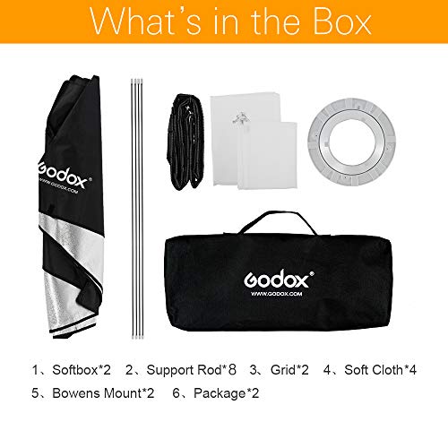 Godox Softbox Striscia a nido d'ape rettangolare Softbox per foto stroboscopica Studio Flash Softbox Bowens Mount (2PCS) (FW22X90)