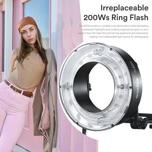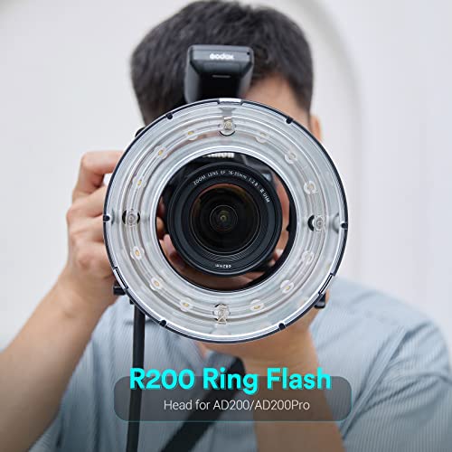 Godox Testa ad anello R200 per flash tascabili Godox AD200/AD200Pro, 200 W di potenza flash fornisce luce senza ombra, supporto anello riflettore e ombrelli