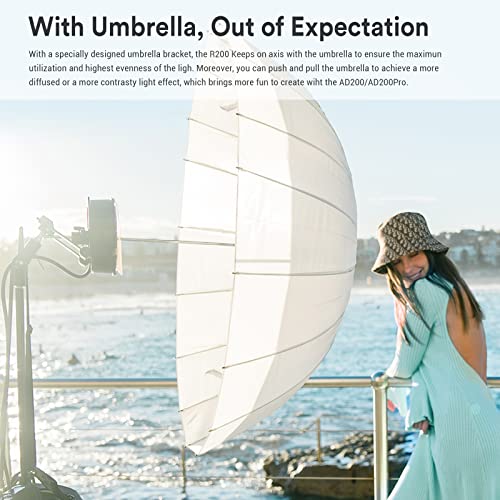 [Supporta modificatori migliori] come riflettore ad anello e ombrelli. Se utilizzato con un diffusore circolare, R200 può conferire una luce morbida e simile ad alone senza punti caldi difficili. Con staffa ombrello UBB-01, R200 mantiene l'asse con l'ombrello per garantire il massimo utilizzo e la massima uniformità della luce.