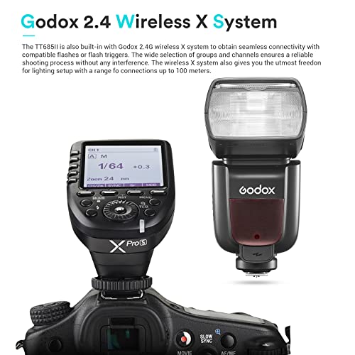 Godox TT685II-S Speedlite TTL Flash Camera 2,4G HSS High Speed 1 / 8000s GN60 Competibile per Sony A7III A7IV A77II A7RII A7R A58 A99 A6400 A6000 (TT685SII)