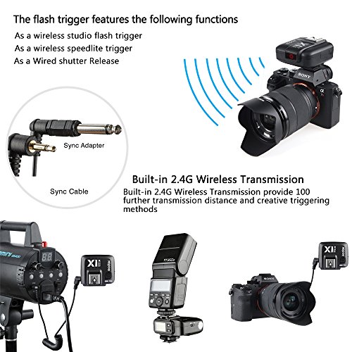 Con il sistema di trasmissione wireless 2.4G, X1S (per Sony) può essere utilizzato per attivare il flash della fotocamera, il flash da studio e l'otturatore della fotocamera su una distanza di 100 metri