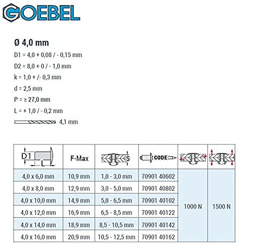 Rivetto standard Cu / Br - Testa piatta - 4,0 x 16 mm di marca Goebel