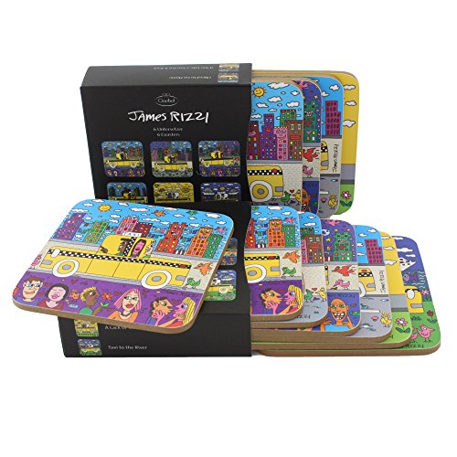 James Rizzi Taxi New York Skyline - Sottobicchiere in vetro e tazza