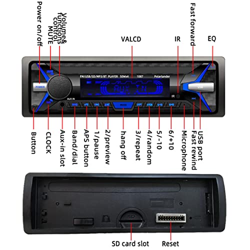 GOFORJUMP Pannello Anteriore Staccabile Autoradio 12V Autoradio Bluetooth 1 Din Car Stereo Player Telefono RDS AUX-IN/FM/USB/Radio Telecomando Car Audio