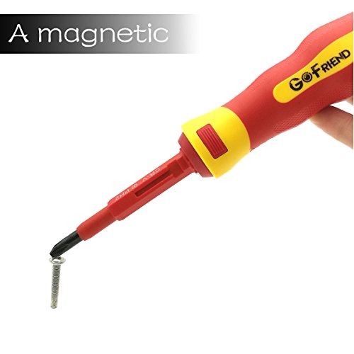 Gofriend, set di 7 cacciaviti isolati da elettricista, forte magnete, isolamento, 500 V, multiuso, 14 in 1, intercambiabili, in lega di cromo vanadio, kit di strumenti per riparazioni da elettricista