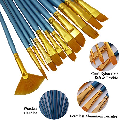 GoFriend - Set di pennelli da pittura, 12 pezzi, punta tonda, fine, in nylon, per acquerello, colori acrilici, pittura a olio, 12/set paint brush