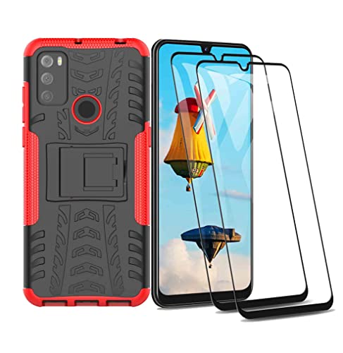 GOGME Cover per Alcatel 1s 2021 / Alcatel 3L 2021 e 2 Vetro temperato, Custodia Protettiva con Supporto, Pannello Posteriore PC AntiGraffio + Antiurto TPU Armour Ibrida Case. Rosso