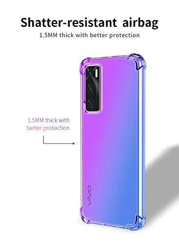 GOGME Cover per Vivo Y70 / V20 SE Cover, Custodia in TPU a Gradiente Colori, [Rinforzare la con Quattro Angoli] Custodia Trasparente Silicone Morbida TPU Ultra Sottile Case (Rosa/Verde)