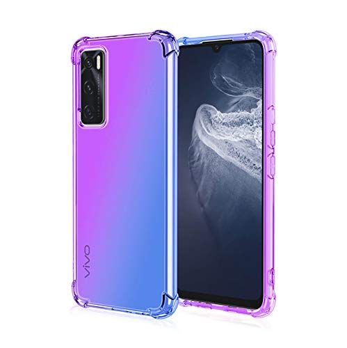GOGME Cover per Vivo Y70 / V20 SE Cover, Custodia in TPU a Gradiente Colori, [Rinforzare la con Quattro Angoli] Custodia Trasparente Silicone Morbida TPU Ultra Sottile Case (Viola/Blu)