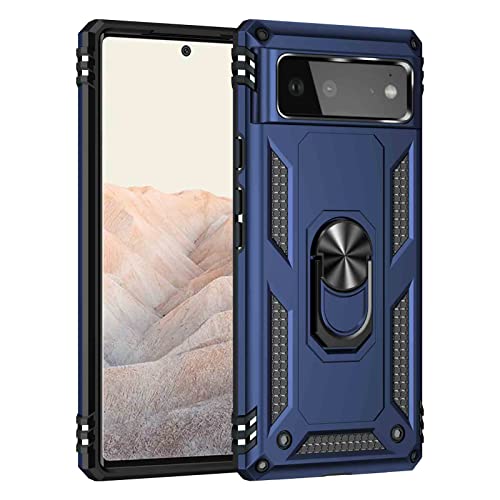 GOGME Cover per Google Pixel 6 con 360° Girevole Supporto dell'anello, Compatibile con Supporto Auto Smartphone Magnetico, Custodia in Silicone TPU e PC Anti-Drop. Blu Navy