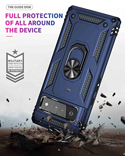 GOGME Cover per Google Pixel 6 PRO con 360° Girevole Supporto dell'anello, Compatibile con Supporto Auto Smartphone Magnetico, Custodia in Silicone TPU e PC Anti-Drop. Blu Navy