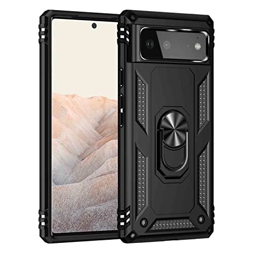 GOGME Cover per Google Pixel 6 con 360° Girevole Supporto dell'anello, Compatibile con Supporto Auto Smartphone Magnetico, Custodia in Silicone TPU e PC Anti-Drop. Nero