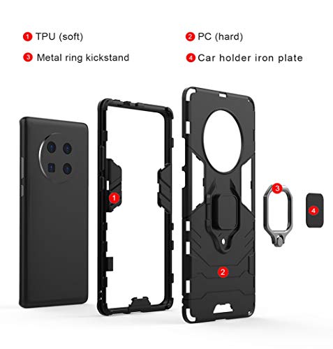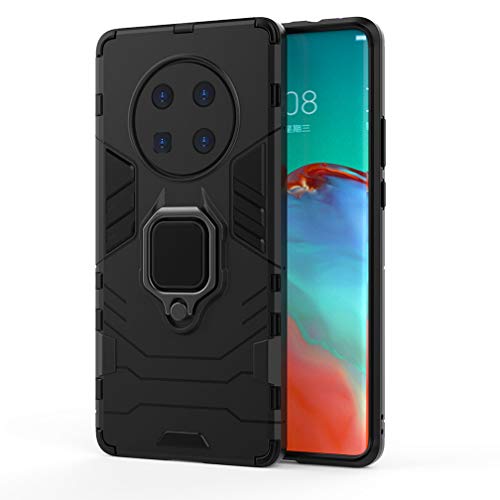 GOGME Cover per Huawei Mate 40 PRO 5G, Silicone Cover con 360 Gradi Girevole Anello, Armor Custodia con Supporto Magnetico Auto, Silicone TPU e PC Doppio Strato Protettiva Bumper. Nero