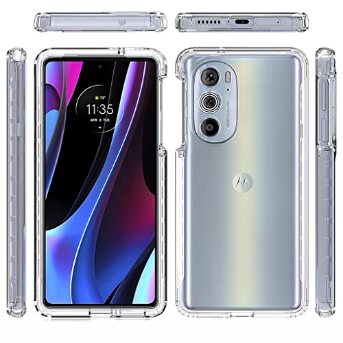 [Moda trasparente] Il retro cristallino è costituito da materiale ibrido e rimane sempre liscio, in modo da poter preservare l'aspetto originale di Motorola Edge 30 Pro. Previene anche la filigrana, le impronte digitali e nessun effetto di ingiallimento, conferendo al telefono un aspetto pulito.