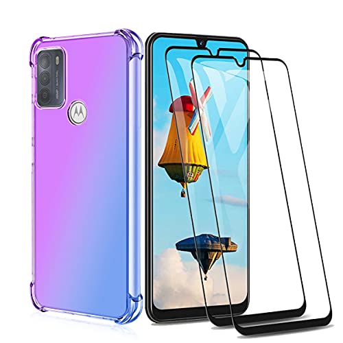 GOGME Cover per Motorola Moto G50 + 2 Vetro Temperato, Custodia in Trasparente TPU, [Rinforzare la con Quattro Angoli] Custodia Silicone Morbida TPU Ultra Sottile Case (Viola/Blu)