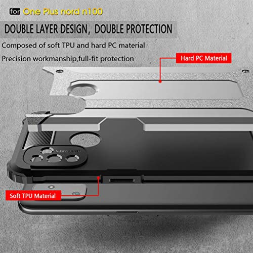 [Doppi strati resistenti agli urti] Costruito in TPU e policarbonato di alta qualità, uno strato interno morbido e gommoso ammortizza il tuo OnePlus Nord N100 4G da cadute, mentre lo strato esterno duro e resistente racchiude il dispositivo per proteggere da collisioni più gravi.