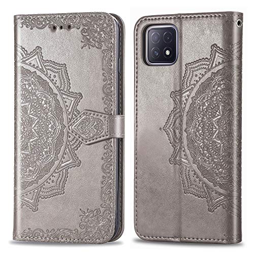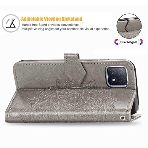 GOGME Cover per Realme 7 5G (Not for Realme 7 4G) Cover, Custodia Chiusura Magnetica Flip Case Stile, Pelle PU Mandala Sbalzato con Supporto di Stand/Carte Slot. Grigio